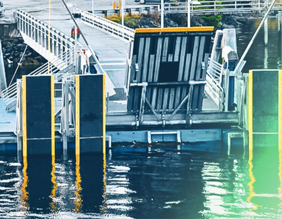 RACO Electric Actuators® are ideal for positioning the height of ramps on ferry piers and gangways. They function as closed lifting columns and can be optionally equipped with a safety system to prevent falls. An integrated travel sensor system saves the lifting position, which means that no reference travel is required when switching back on. Our electric actuators adapt to the natural ferry movements in the water.
